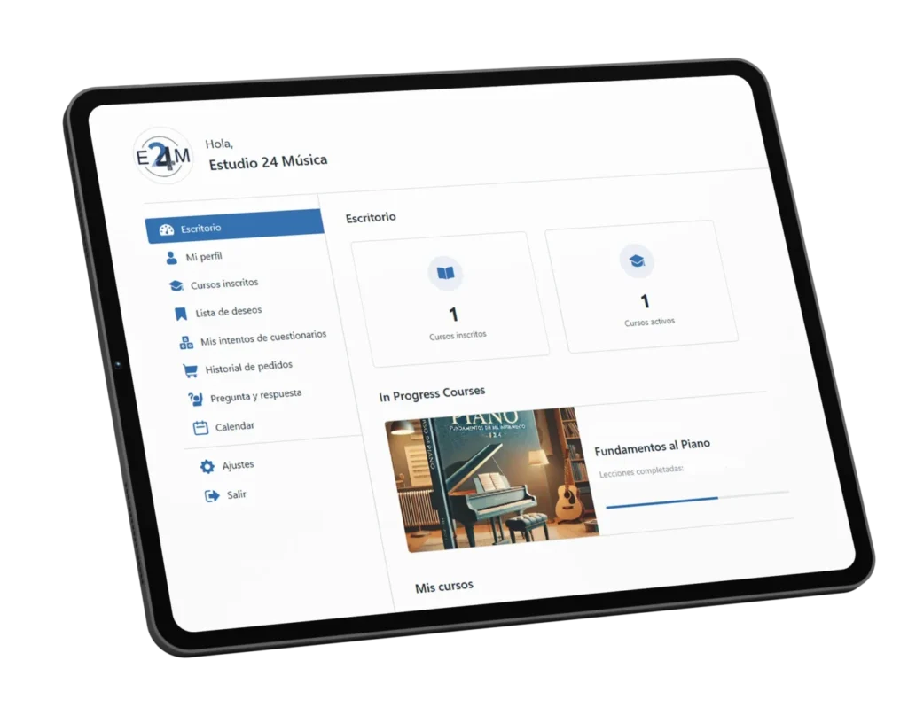 Cada lección cuenta con su evaluaciones, ejercicios, partituras y guias descargables.